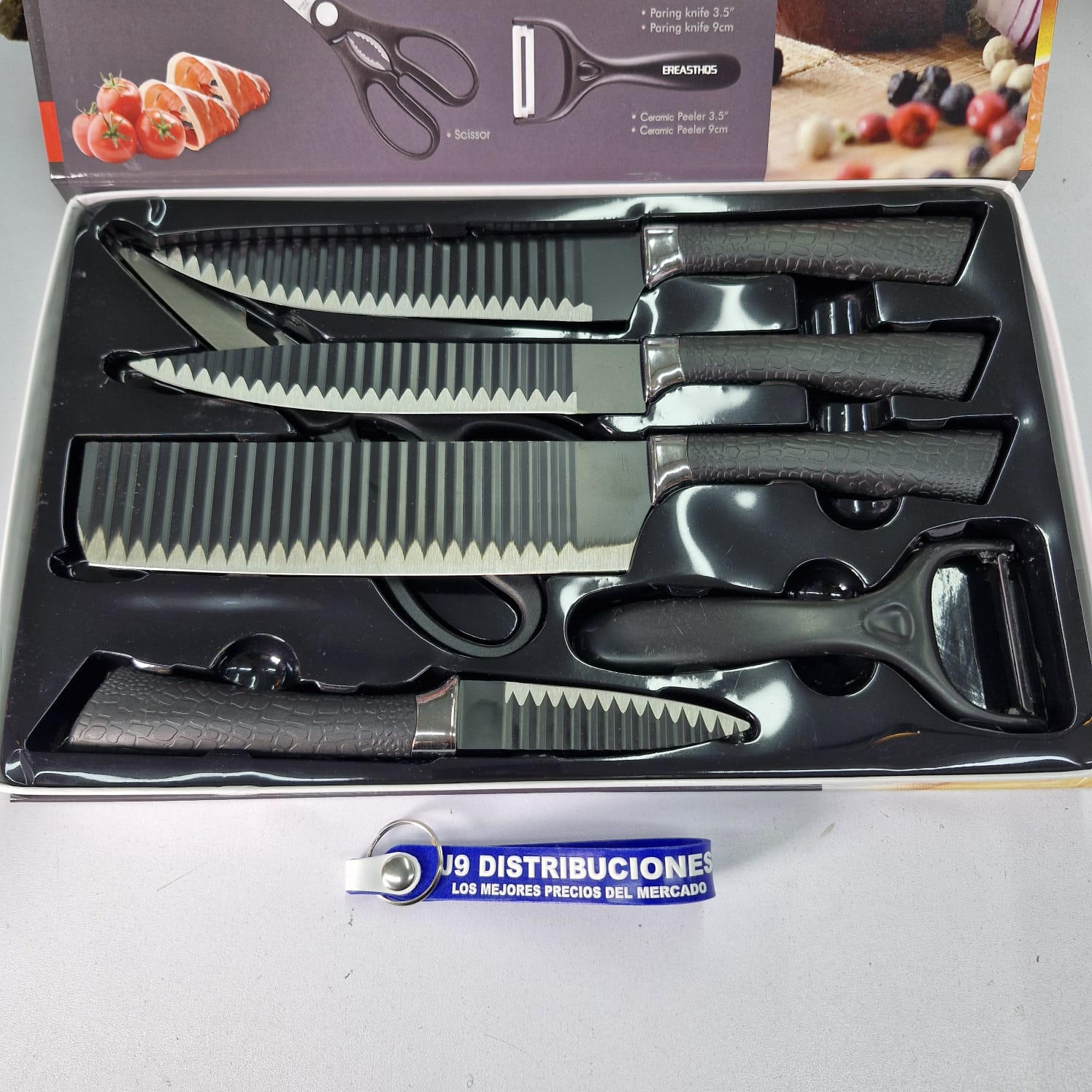 Incluye 6 cuchillos de diferentes usos y tamaños.