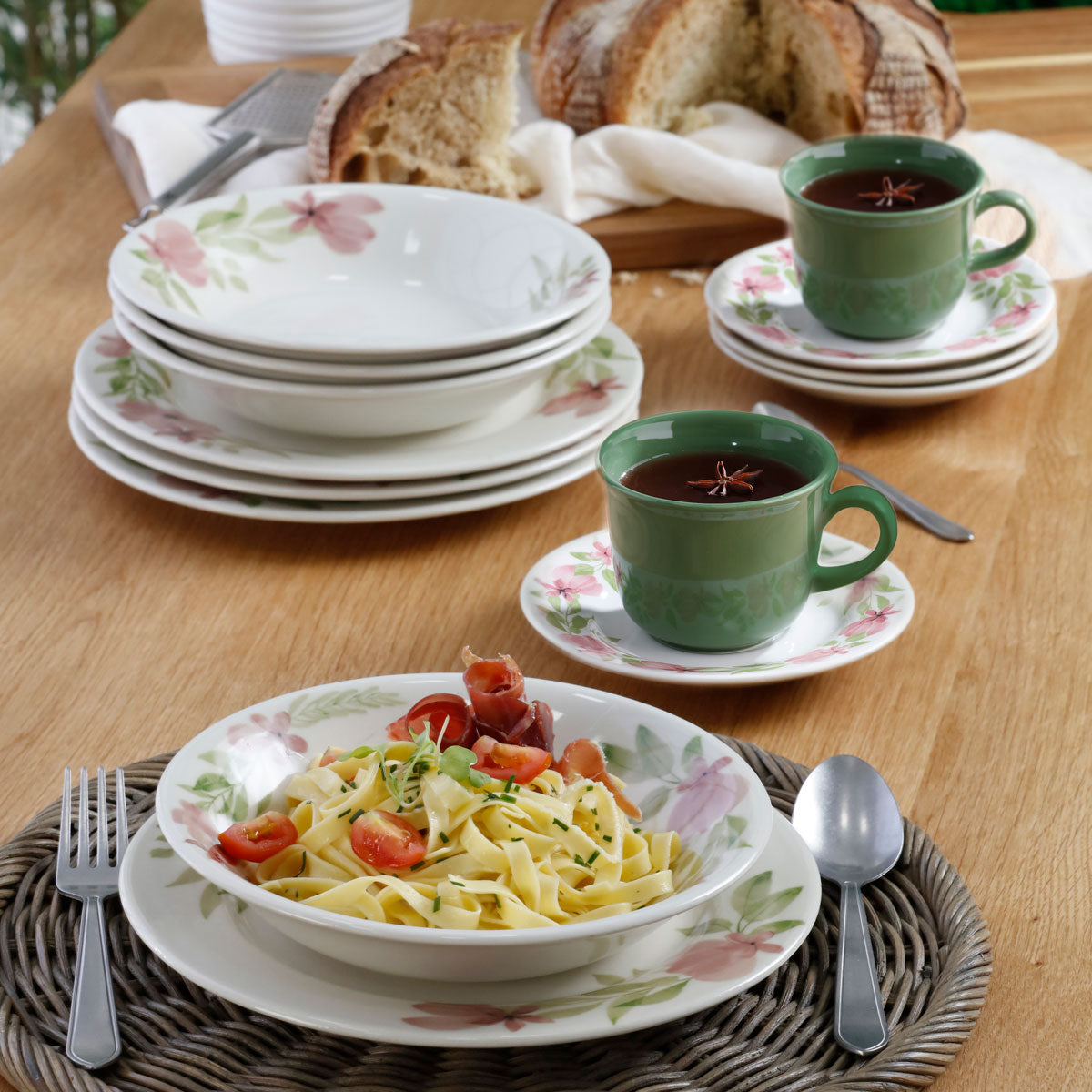 Composición: Incluye platos hondos, planos y de postre (según presentación).